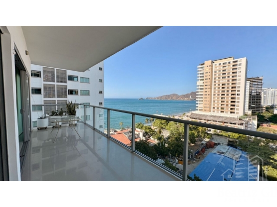 Una de las principales ventajas de este apartamento es su impresionante vista panorámica desde el balcón, donde puedes relajarte y disfrutar de la belleza del Mar y las Montañas mientras tomas un café o compartes una cena al aire libre. También cuenta con una barra estilo americano en la cocina, lo que facilita la interacción y convivencia con las visitas o con tu pareja. Además, la cocina está completamente equipada con electrodomésticos modernos y una cocina integral para que puedas preparar deliciosos platos.